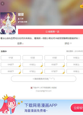 简介: 《甜夏》漫画简述:因为受到了基友的怂恿,单纯一根筋的下一天去闯了一所据称是鬼屋的豪宅,可是鬼没有见到,却见到了一个坐在钢琴前的美丽少女,为了确认那少女是人是鬼,夏一天再次拜访,却发现那女孩家中简直清冷的没有一丝人气。因为对少女心存爱慕,所以夏一天不请自来,每天为少女打扫做饭,只为撬开她紧闭的内心~