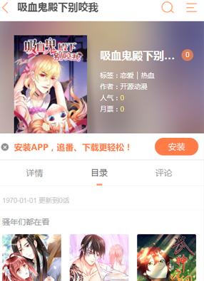 简介: 漫画《吸血鬼殿下别咬我》简述:在一次奇幻的旅程中,偶然了一个沉睡的美男,便好奇的亲吻了上去,没想到美男就醒了?而且还变身成为了吸血鬼的?!一醒来就直接往身上扑是什么意思嘛!!!难道是想将我的血都吸光吗?求求你了吸血鬼殿下,要不我将身体献给你好不好啊~